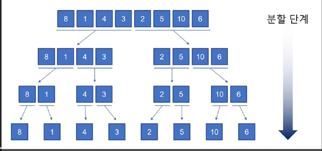 자료구조를 분할하고 각각의 분할된 자료구조를 정렬한 후 다시 병합하는 정렬 방법
